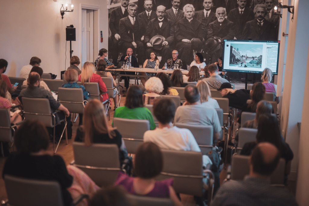 Fot. Dyskusja w Narodowym Instytucie Kultury i Dziedzictwa Wsi, Warszawa 02.07.2025 r., paneliści: Mikołaj Madurowicz, Magdalena Krzosek, Jerzy Szałygin, Małgorzata Jaszczołt, Anka Wandzel, prowadzenie: Bogna Świątkowska, realizacja: Fundacja Bęc Zmiana (materiały organizatora).